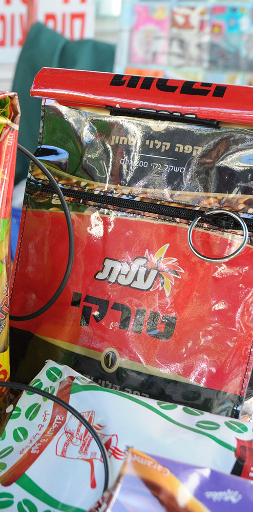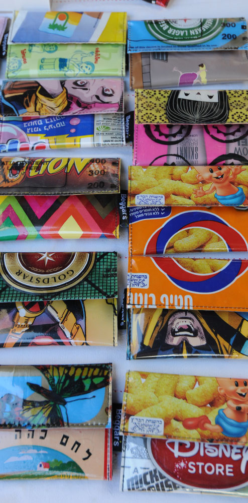 אנחנו יוצרים ארנקים, תיקים, קלמרים, כיסויים לדרכון, ת.ז וכרטיסי אשראי. הכל אצלנו נעשה בשימוש חוזר משקיות, אריזות ועטיפות. המוצר המוגמר איכותי ועמיד לשנים רבות. במדרחוב מאז 2004