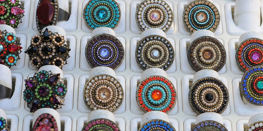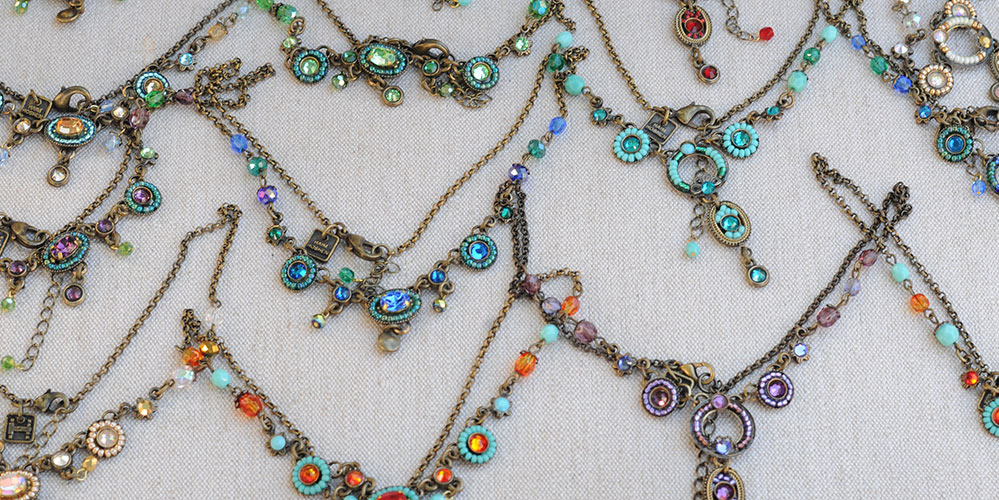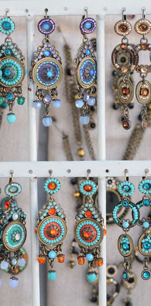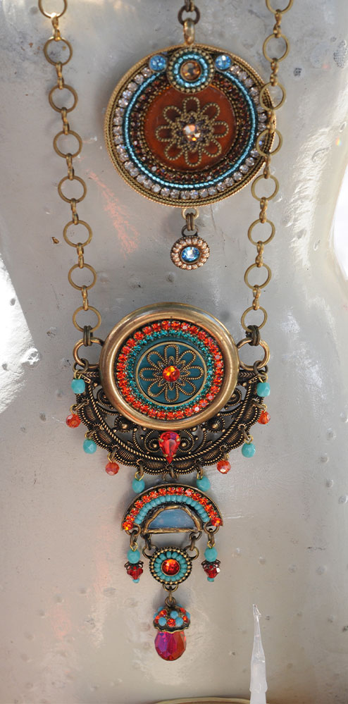 Jeweler for 35 years. I think that jewelry should express feelings through color and the materials from which they are made, and it can be any possible material. The materials I work with are metals, which I find in unusual places, and Tiffany glass used originally for stained glass works. The jewelry reflects my Bukharan roots and is influenced by the carpets and silk scarves originating in my father's home in Samarkand.