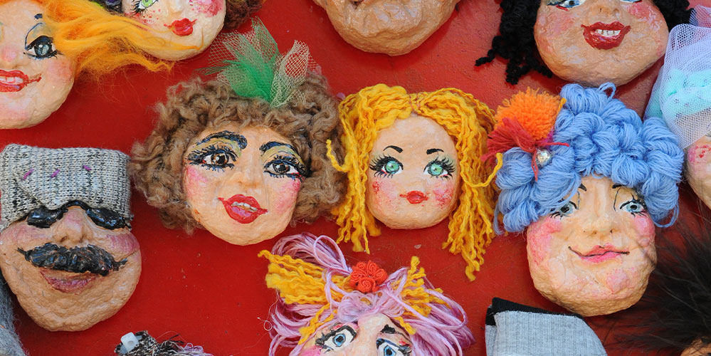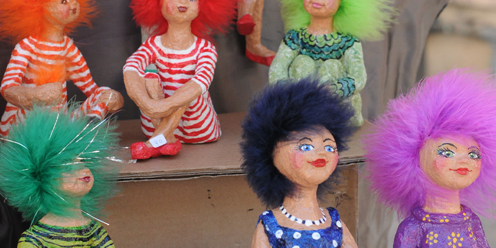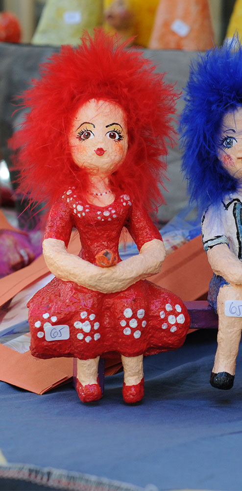 Papier maché sculptures of figures and especially of women of character. The figures are individual and unique, expressive and graceful, with an emphasis on detail and color.
