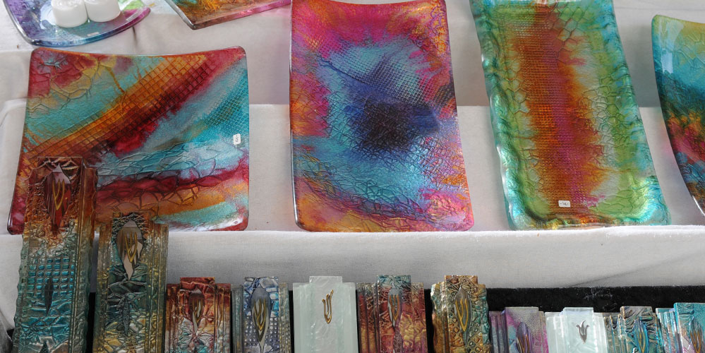 אנחנו מתמחים באומנות הזכוכית. היצירות שלנו הן מקוריות וכל יצירה היא חד פעמית. העבודה מבוצעת בטכניקות מעורבות של התזת חול, צביעה קרה וצביעה חמה בתנור. בין המוצרים בדוכן תוכלו למצוא מזוזות, חמסות, פמוטים, חנוכיות וכן כלי הגשה ייחודיים.