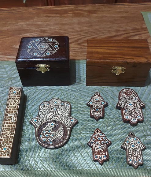 Grigori’s hand-crafted items are an exquisite example of an ancient craft of bygone days, which is disappearing from our world. This is your opportunity to own one of these treasures and be able to pass it down to future generations. Gregory builds beautiful boxes for jewelry and other valuables and collectibles, no two boxes are alike and cannot be found anywhere else in the world. In addition to the boxes are items of Judaica such as Hamsas, Star of David symbols, Plaques, Plates, Pendants and Charms.