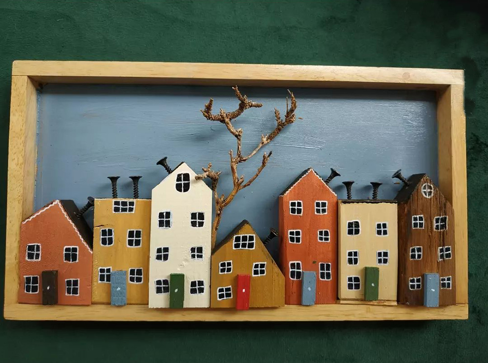 Lisa's little wooden houses are inspired by her travels in the UK, Europe and Israel. Lisa creates the houses from recycled wood, as it is important to her to save the planet. Recently she has added Tel Aviv Bauhaus and old Jerusalem houses to the collection. The houses are painted in Naive Art style.