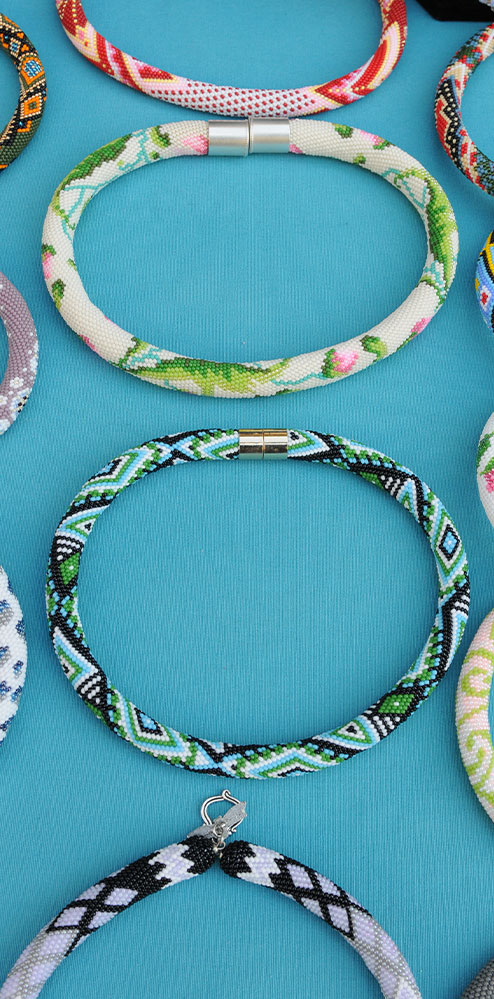 תכשיטי חרוזים מורכבים וצבעוניים להפליא. יוצרת תכשיטים בעלי נפח עם דוגמאות גיאומטריות, פרחוניות, ואבסטרקטיות, תכשיט מיוחד- לנשים מיוחדות.