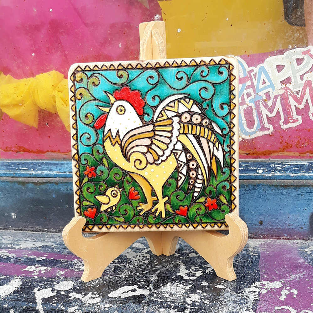 אני יוצרת ציורים קטנים, שלטים, פרטי יודאיקה וחפצים ייחודיים מעץ אורן טבעי. העיטורים, שהם הייחוד הבולט של כל עבודותיי, עשויים באהבה ובסבלנות רבה בטכניקה מעורבת של צריבה בעץ וציור באקריליק. היצירות שלי מאופיינות בצבעוניות עזה, טקסטורות יוצאות דופן, וביצוע מושקע ומוקפד.