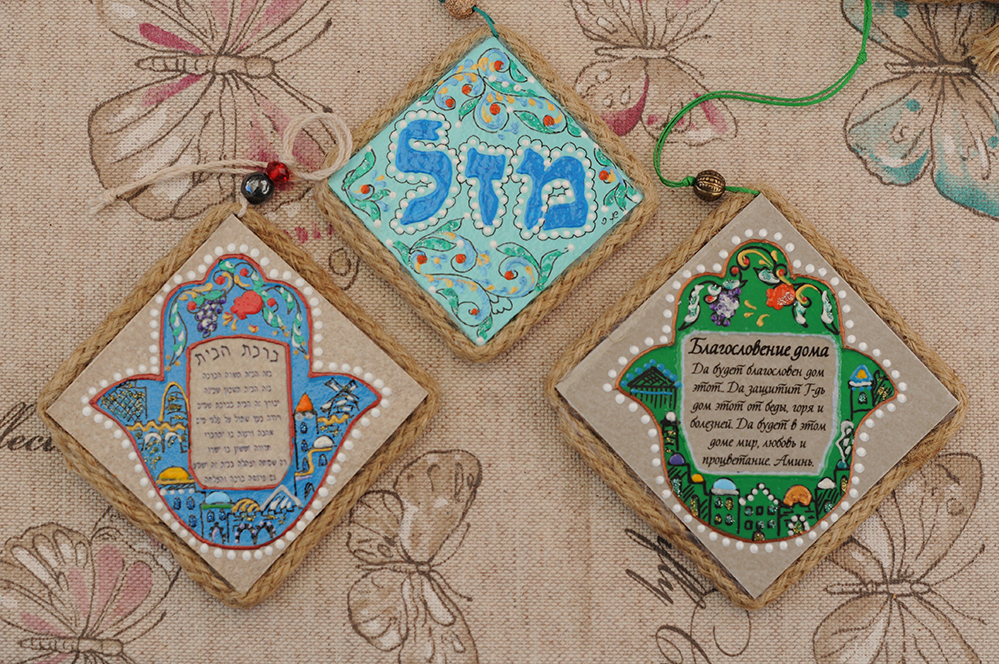 I paint on ceramic tiles. All my works are unique and exclusive, and much creativity and thought are invested in them. Among my work you can find city views, signs for houses, greeting signs, mezuzah cases, Hamsas and more …I also draw to order. All my works are original and handmade.