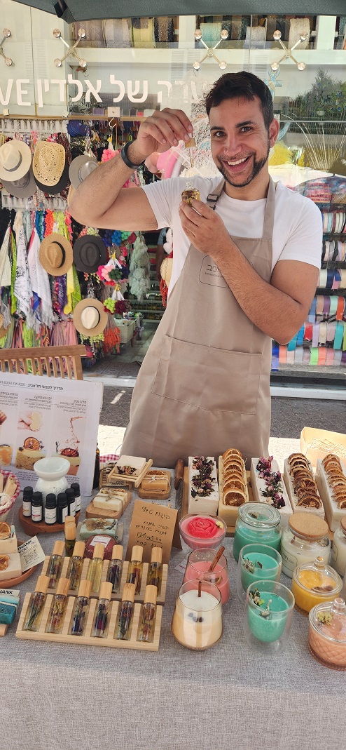 I’m Orel, founder of Sabon Tel Aviv. Moving from the serene fields of the south to the bustling streets of Tel Aviv left me feeling disconnected. To find my balance, I turned to nature, seeking solace in its scents and memories amidst the urban chaos. This journey inspired Sabon Tel Aviv. With a deep passion for natural apothecary, I craft soaps, candles, and perfumes that capture Tel Aviv’s essence – whether it’s the tranquility of morning walks in Neve Tzedek, the refreshing sea breeze in Jaffa, or the vibrant aroma of Levinsky Market. Each product is meticulously handmade with pure essential oils and the finest local ingredients, bringing moments of calm and nature into your daily life. Discover Tel Aviv’s soul through scents that refresh your senses and restore balance .Join me on a sensory journey through Tel Aviv—where every scent tells a story.
