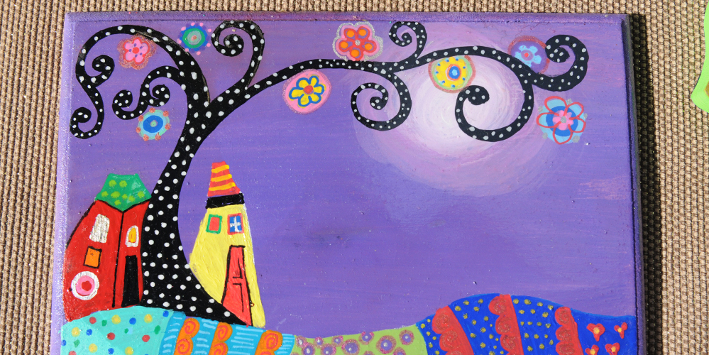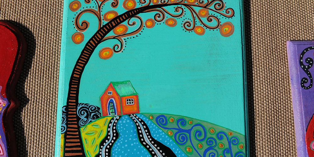 Colorful and vibrant drawings on ceramic, wood, and glass, coated with a shining glaze of cold enamel that creates the impression of a glass coating. Jewelry boxes, mirrors, Hamsas, and more. All the works are unique. Everything is done by hand and each is a one-time creation.