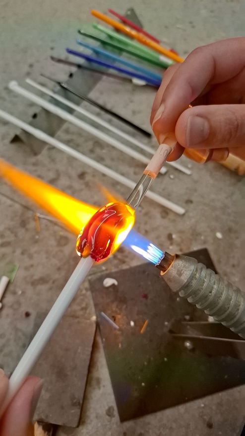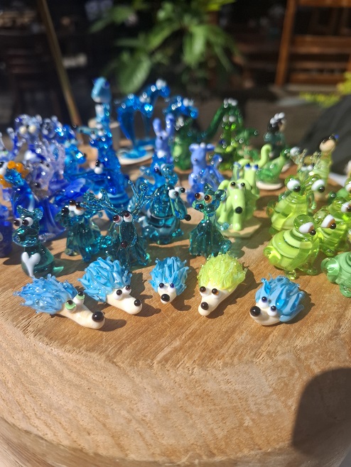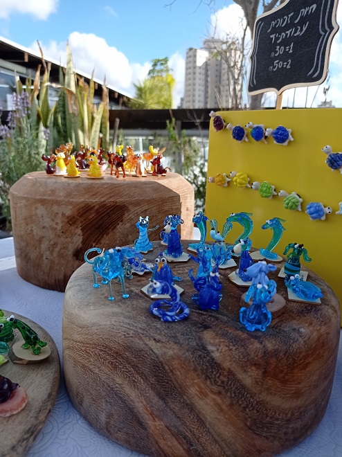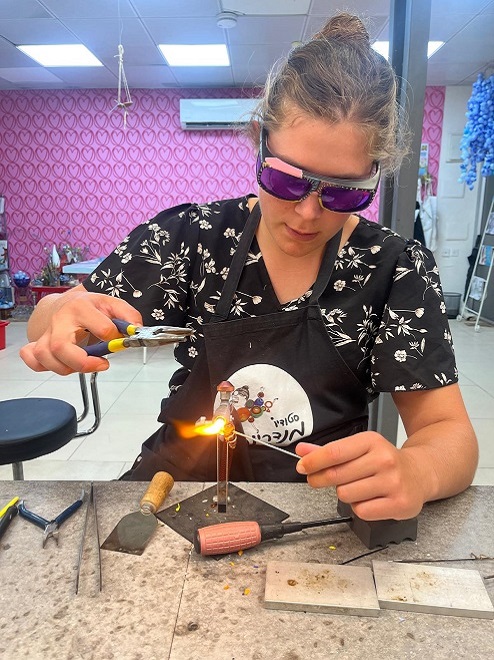 Talia epelboimm – Glass Artist🧚🏻♀️ Sculpts colorful and joyful glass figures and animals. “Plays with fire” since the age of 11 and creates art in hot flames of over 1000 degrees, with a unique and fascinating technique. Comes from the Golan Heights, where she creates the glass charms at the Mandarina Studio, where you too can come and create the magic with your own hands